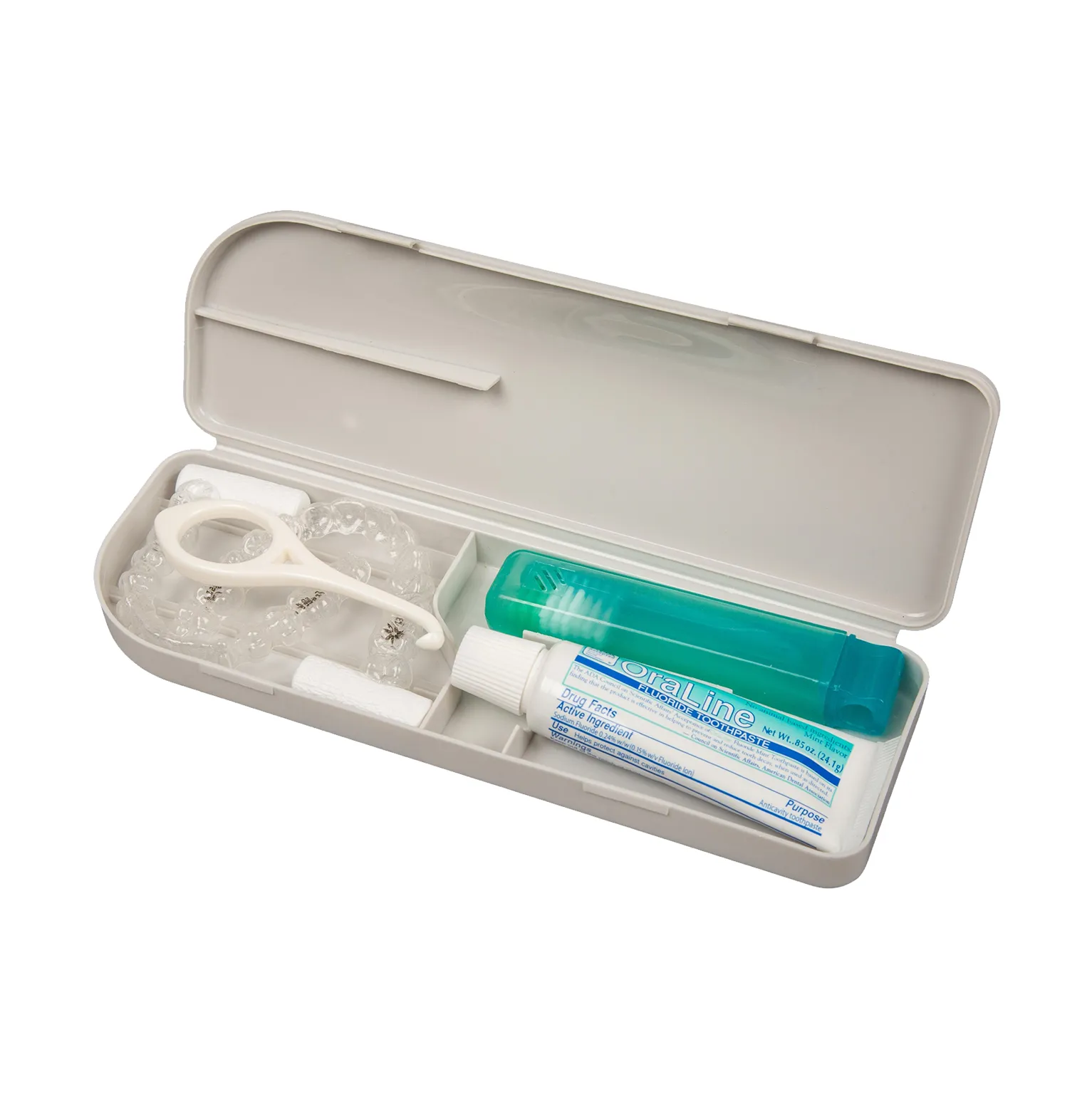 Capsule is a small, portable case for your clear retainers that includes a travel-sized toothbrush and toothpaste. Perfect for handling your retainers in day-to-day situations.